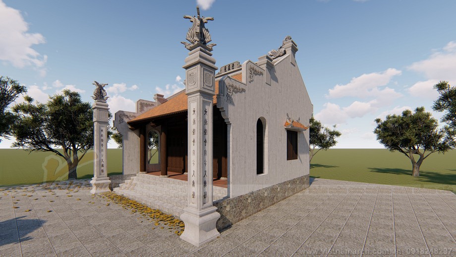 Thường được thiết kế kiểu 3 gian, 2 mái hoặc chỉ 1 gian thờ và khoảng sân trước mặt.