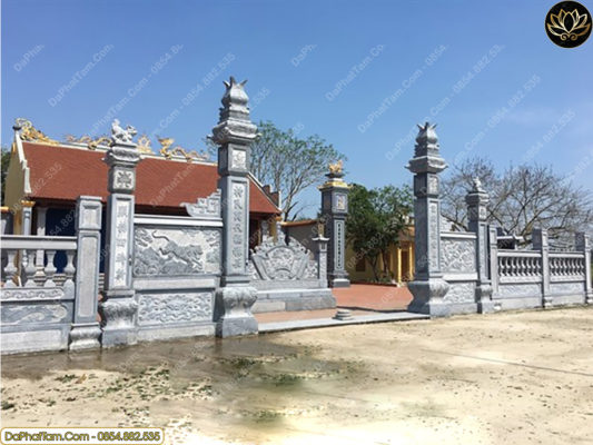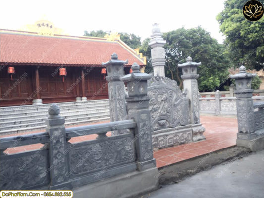 Là phần tường rào bao quanh bảo vệ cho ngôi nhà thờ, được trạm khắc hoa văn tinh xảo, kết hợp với các cột trụ có gắn đèn đá hoặc hoa sen. Tạo sữ vững chãi bền bỉ cho tổng thể nhà thờ.