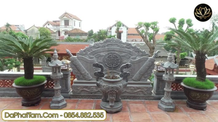 bàn thờ đá, bàn lễ đá, lư hương đá, đèn đá, lọ hoa đá, bát hương đá, cuốn thư đá, chiếu rồng đá, lăng thờ đá, cây hương đá, tượng phật đá,…