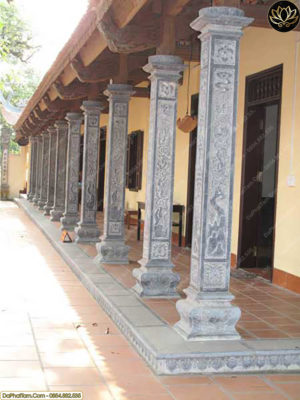 Cột đồng trụ đá thường nằm ở ngay bên ngoài hai bên đầu hồi của nhà thờ họ kết hợp với các cột hiên bằng đá tạo sự vữ chãi, thiên niên vạn đại cho nhà thờ.
